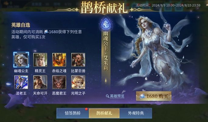 活动期间,玩家可花费钻石在活动界面内指定兑换一个列表中的英雄(仅限1次)。
