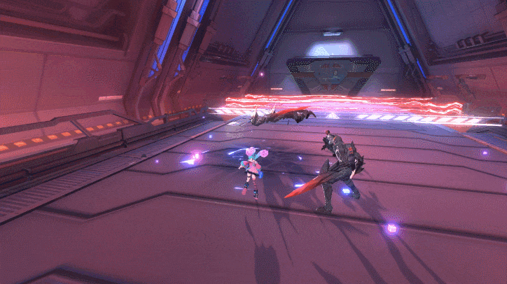 我们将魔灵的普通攻击设计为四段,其中第一段为光束冲击,第二段为召唤两只猫爪对敌人进行拍打,第三第四段则为音频可视化的动感立体方块冲击。
