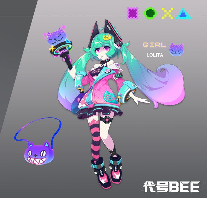 我们在设计魔灵时,希望突出她可爱又贪玩的性格。因此我们结合她的人物设定,提取了“电音”和“电玩”两个要素作为角色设计的基础。