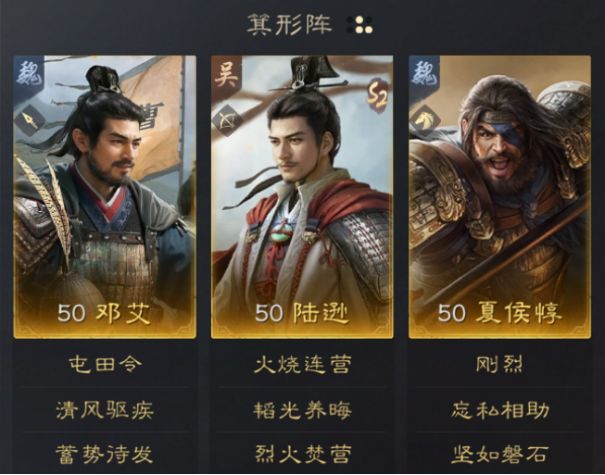 整套思路为尽可能增加队伍坦度保证队伍生存,以供陆逊慢慢输出!利用邓艾和夏侯惇的抗伤能力给予陆逊充足的输出时间及其空间,等待陆逊堆叠焚烧状态,给予敌方大量爆发!