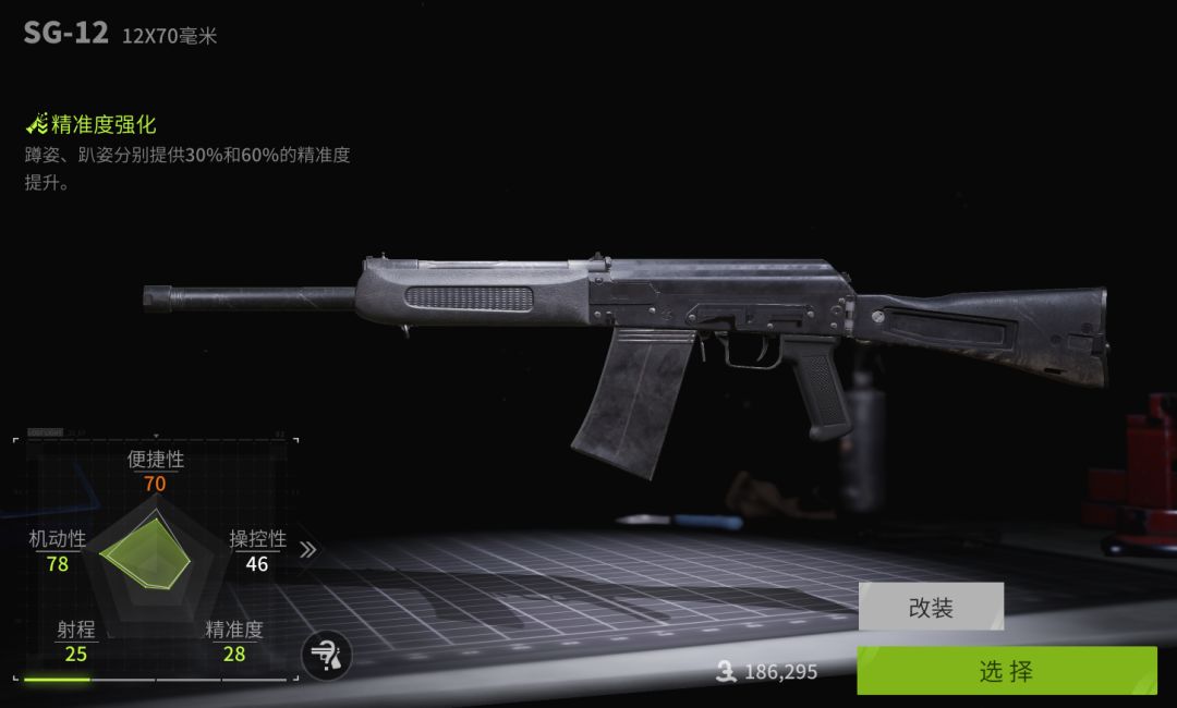 二:精准度强化词条定位:稳定散射、集中伤害实用评分:⭐⭐⭐⭐娱乐评分:⭐⭐⭐精准度强化词条独属于SG-12,蹲姿时散射范围减小,趴下后进一步减小,这在使用鹿弹等子弹时有很大优势,而使用龙息弹时一般不应用这一词条。主流玩法是使用鹿弹,蹲姿作战,中近距离秒人完全不是问题。而且SG-12是一把完全无后座的枪械,不需要压枪。