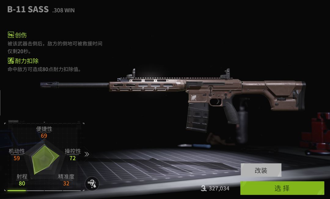 三:耐力扣除词条定位:扣除敌方体力、骚扰压制实用评分:⭐⭐⭐娱乐评分:⭐⭐⭐⭐耐力扣除这一词条暂时只有B-11 SASS拥有,射击命中可以扣除对手耐力80点,射击3~4次即可让对手无法跑步、攀爬、跳跃,极大限制对手突脸。主流玩法是中远距离架枪骚扰,让对手无法转移,只能对拼,再利用狙击枪的优势地形取胜。