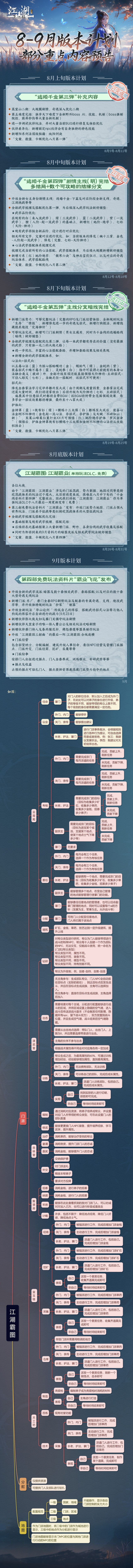 下一站江湖Ⅱ8~9月版本计划(部分)
