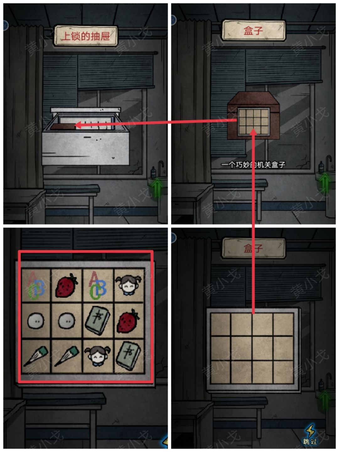 20.打开柜子,点击里面的箱子,根据小说上的线索(最喜欢外婆),结合单词表上的线索(外婆的英文单词:grandmother),输入密码:grandmother