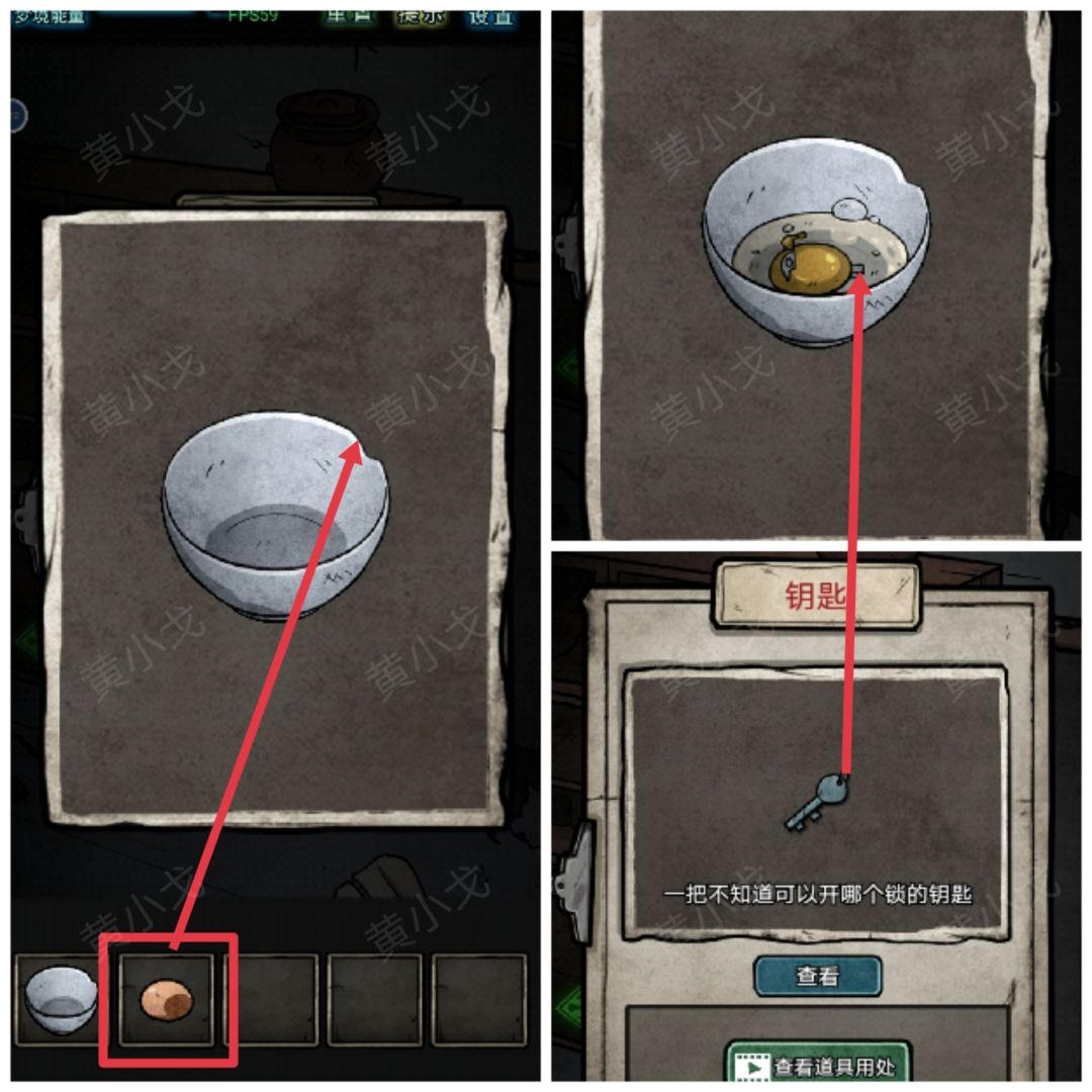 9.用【干净的碗】磕破【鸡蛋】,获得【钥匙】