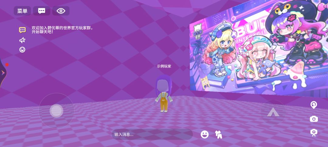最下方可以发送聊天消息,使用表情动作,更换装扮