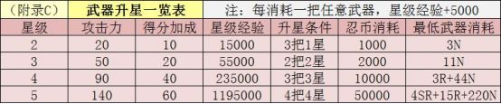 3. 武器升星时,N级最高至2星,R级最高3星,SR级最高4星,SSR级最高5星,推荐任意武器升2星都用1星N级武器垫,任意武器升3星都用2星N级武器垫,任意武器升4星都用3星R级武器垫,任意武器升5星尽量用4星咸鱼垫,不要浪费R级及以上资源,能省则省,毕竟R级及以上可以喂狗(?)换骨头。