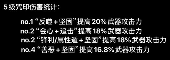 其他咒印要不触发有比较苛刻的条件要不是奇怪的效果,如追求伤害不如无脑养反噬坚固会心追击。