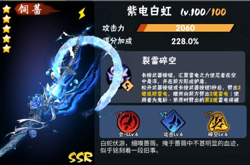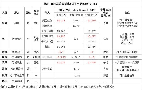 当前版本T0武器:风系·尽滅(对应忍者隼白)、火系·怒鲤双生(对应忍者卫鲤)、雷系·紫电白虹(对应忍者紫原)。
