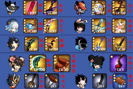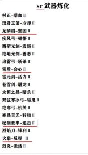 1. 目前推荐养武器顺序:主流武器尽滅、怒鲤双生、紫电白虹各一,然后养其他T1武器,或直接养两把尽滅、怒鲤双生、紫电白虹,然后开始雷盾、海螺、朱雀、等工具型武器养成,其中打无伤等雷盾基本必带,竞技场海螺/龙毫笔也很重要。