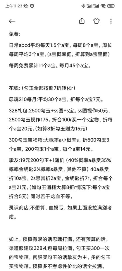 下图是曾经一位二区大佬做的养宝物推荐,但目前挚友已经消失,部分数据也有改动,只能作为一个粗略估计的参考方案。