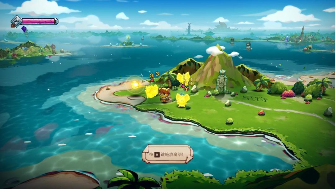 本作在玩法方面依旧保持着轻度ARPG的风格,在一张类似平常游戏大地图的区域控制你的小猫咪完成动作战斗以及探索冒险,整体游玩下来还是很轻松和愉快的。