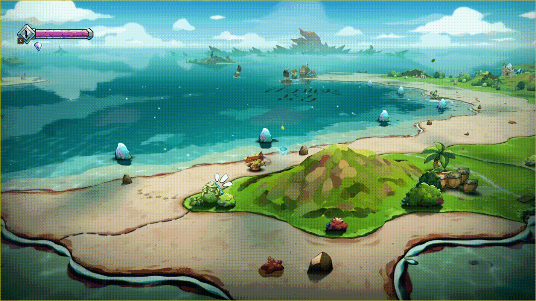 和前两作一样,地图分割线划分了各个区域,区域内包含海上和海下的冒险地图——海上可以找到隐藏的秘宝,或是被精英鼠鼠守卫的宝箱或是需要解谜的宝箱,玩起来有一种《马里奥奥德赛》的感觉,我个人还是很喜欢的;
