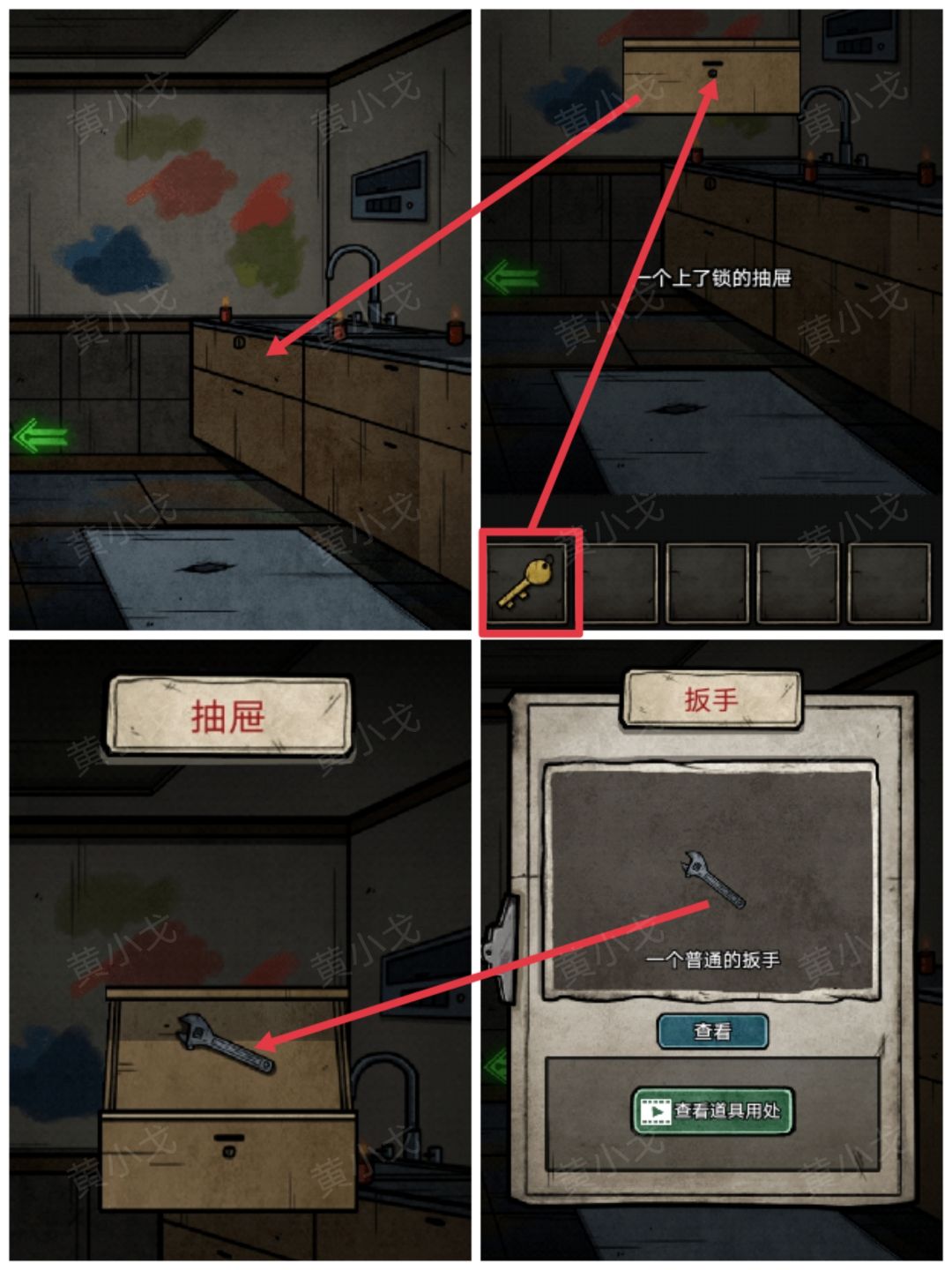 35.点击收纳柜抽屉,用【钥匙】打开,获得【扳手】