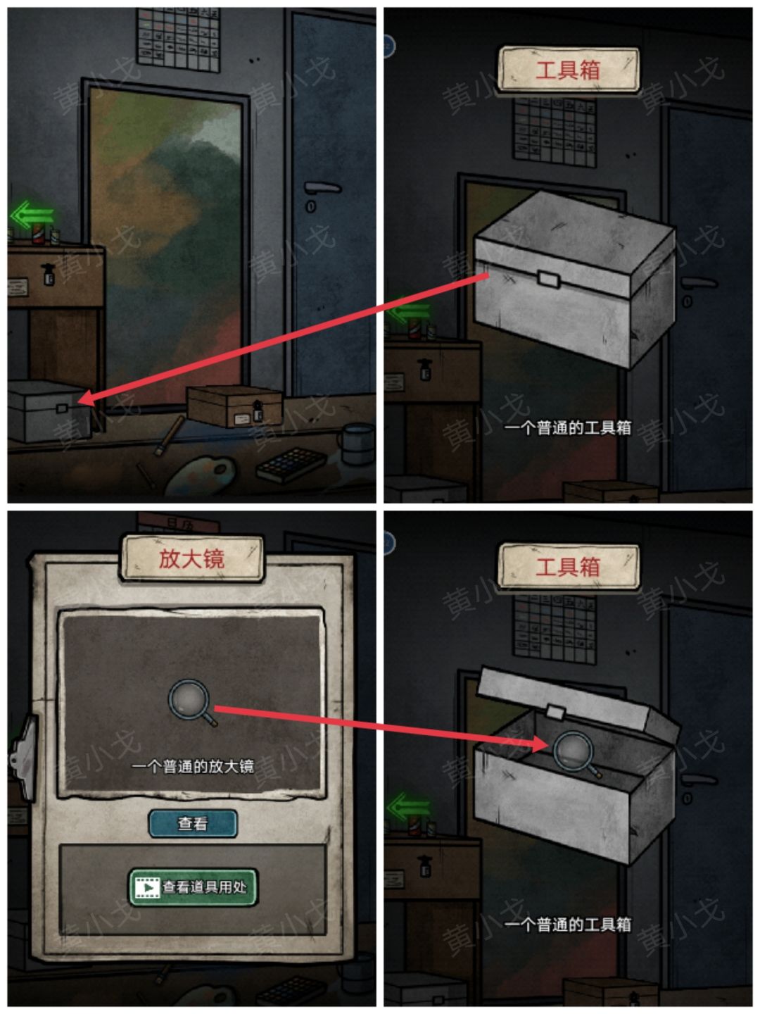 1.(画室右)点击桌子下面的工具箱,打开,获得【放大镜】