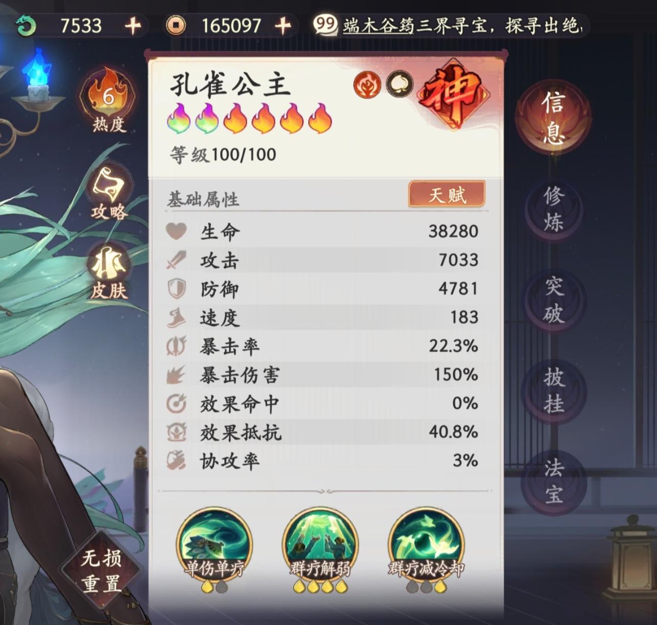 速度非常关键,我基本是按照啵啵啵啵的来的,羊201一速,嫦娥>吗喽>六耳,都在190左右,奶妈女儿>孔雀,但是要小于赤脚。