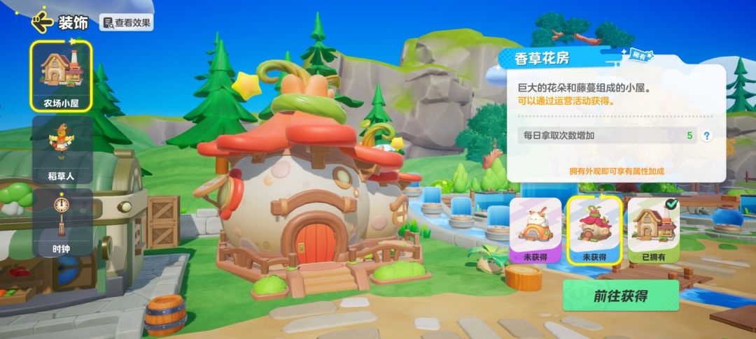 进入【星宝农场】,点击游戏界面右上角【发现】。或是点击【装饰】-【香草花房】,选择【前往获得】,即可进入“花房建造礼”活动界面啦~