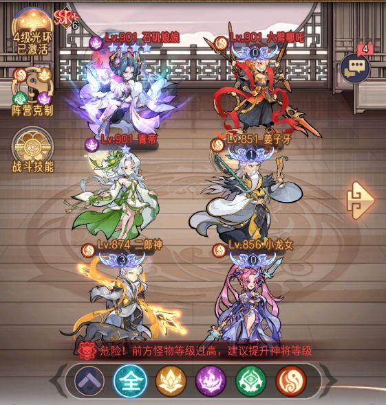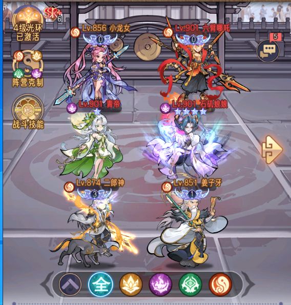 2.搭配的卡组建议,如小龙女,姜子牙,六臂哪吒,二郎神,青帝,石矶娘娘;这套阵容不仅有输出还有恢复以及无敌,不论是推塔还是推主线都是很强力的。