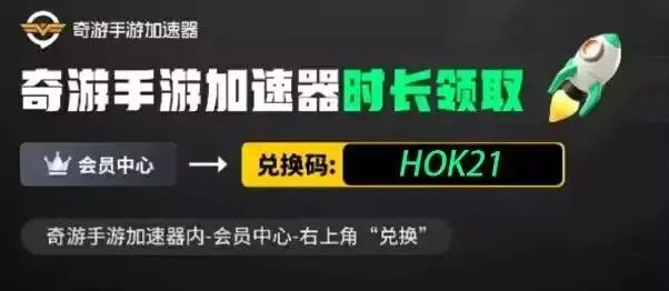 最后大家记得可以在奇游手游加速器内找到我的-兑换中心输入兑换码【HOK21】 即可领取时长哦!