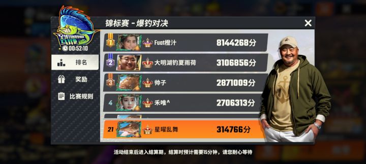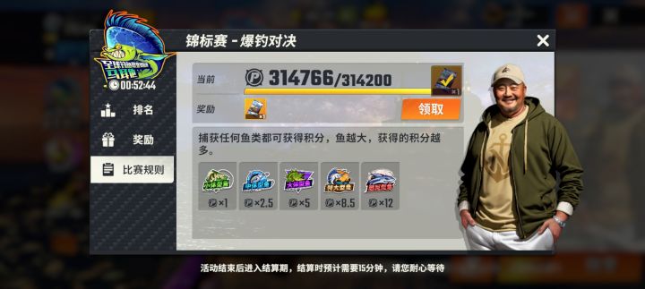因为有钓王争霸,我建议:第二周4天过后你想冲再冲,前面争榜真的不划算。