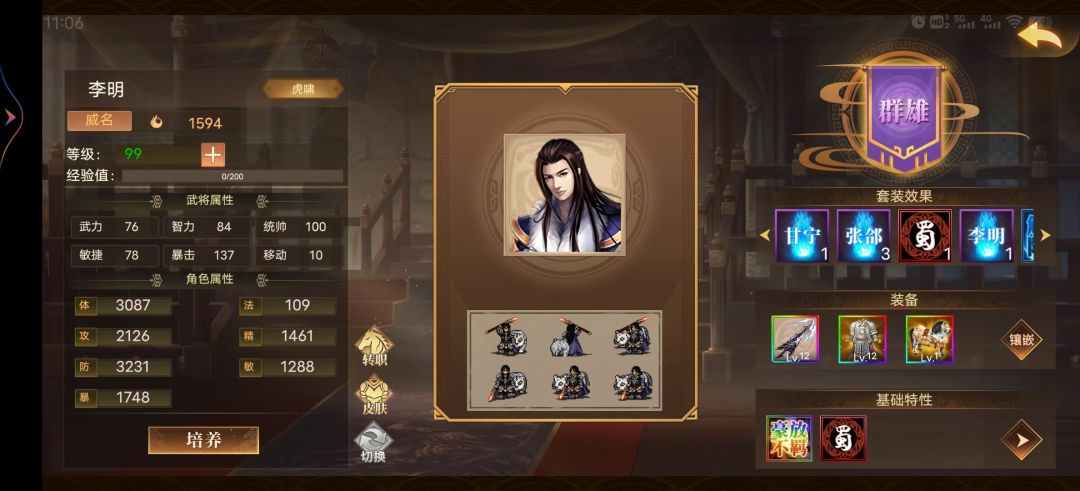 图4:李明、刘备、郭嘉,徐庶。远程按顺序点死前三个统帅,李明杀主将,吹风,刘备给慢粮车加移动或调度