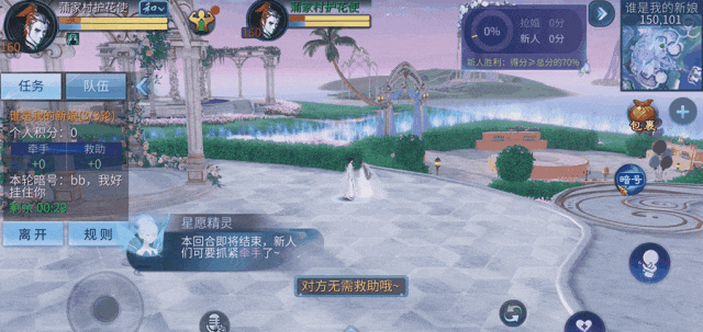 游戏内新人阵营的玩家互为匿名状态,被抢者可向异性发出牵手邀请,对方可以接受或拒绝牵手请求,回合结束时如保持牵手状态,牵手正确的对象可积5分,错误的对象积3分。