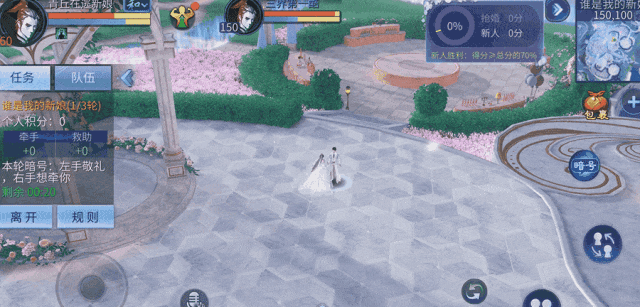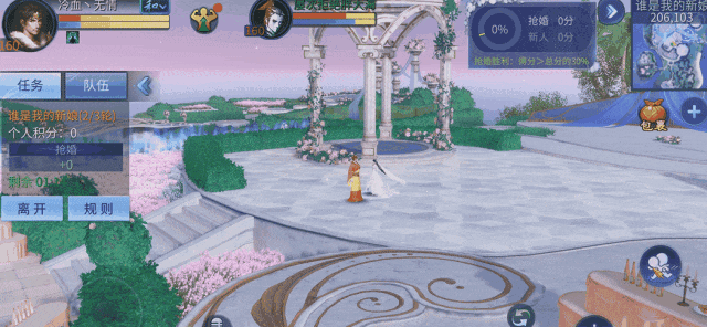 进入游戏后,抢婚者可展开大地图查看抢婚对象的位置,该技能持续三秒。同时抢婚者可抱起场景内的异性新人 ,将抢来的异性新人在任意安全区放置即可获得5积分。