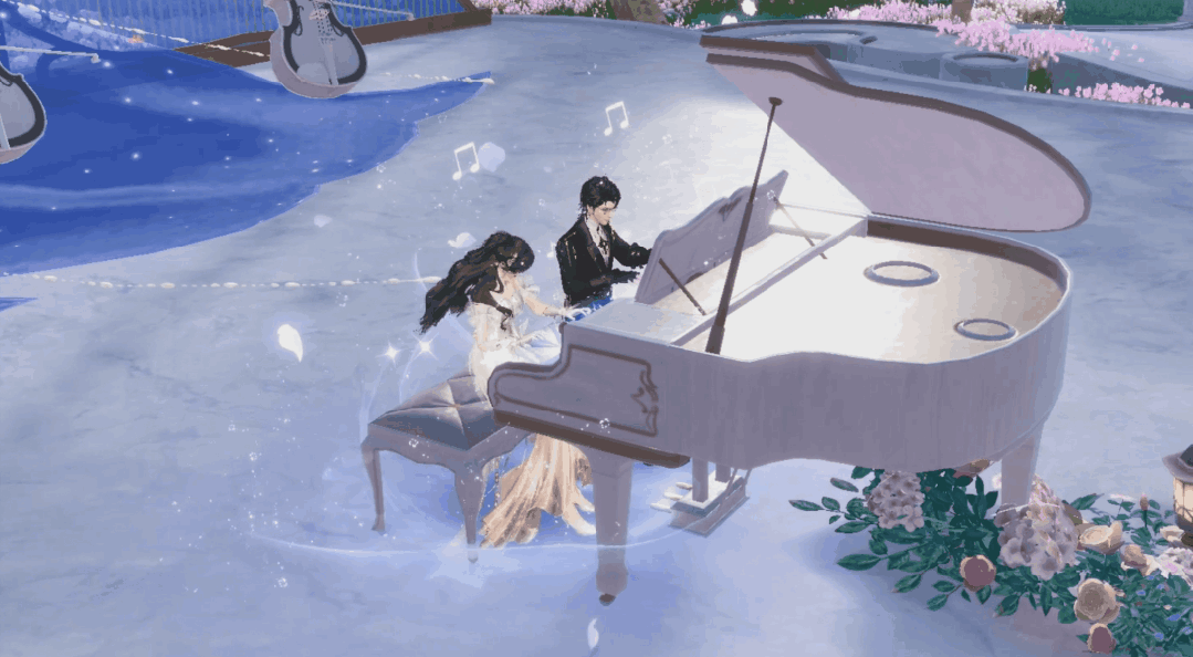 除了以上婚礼阶段,我们还在誓约之礼当中设有种种彩蛋:比如你可在场景当中找到各色乐器,拥有音乐细胞的你可为本场婚礼带来不同的乐曲;还可使用临时技能聚焦新人,第一时间跟进婚礼流程。