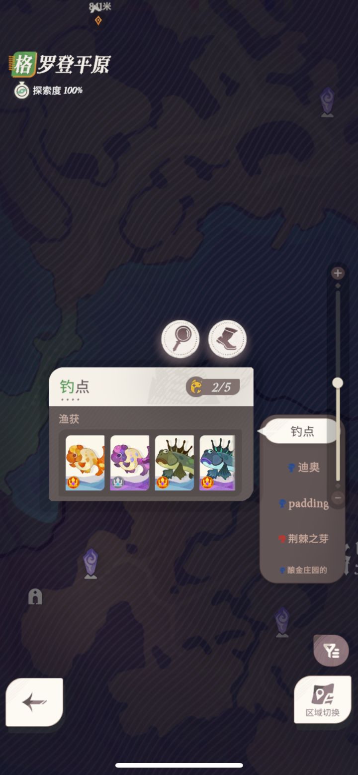 地图上可以点击钓鱼点,查看这个地方能够钓上来的鱼种。优先找不显示具体信息的开图鉴。