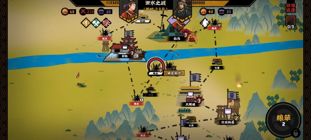 洛涧之后直接淝水决战。最好决战前多买些兵。