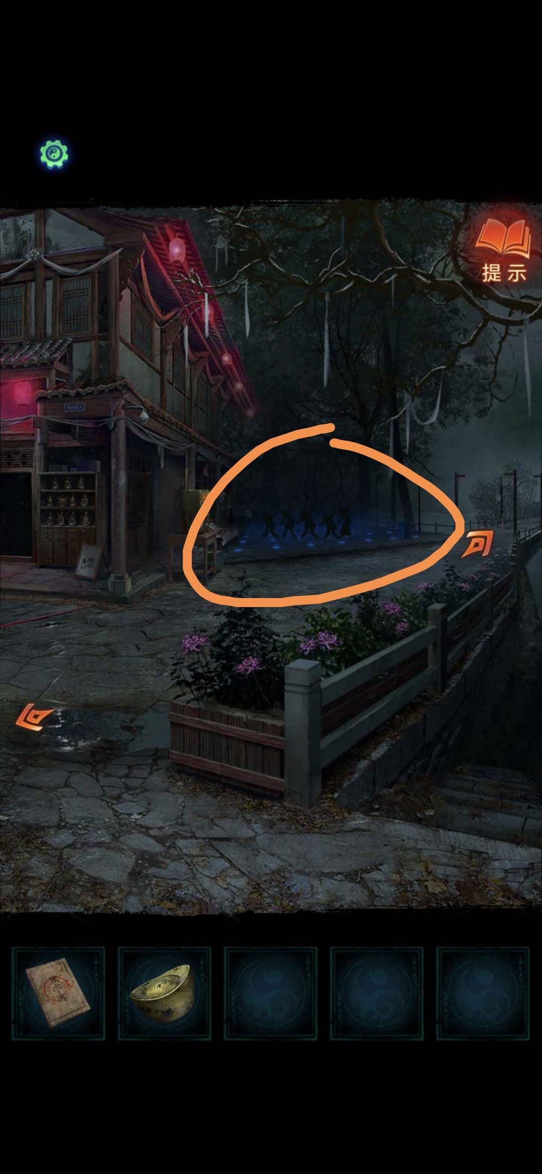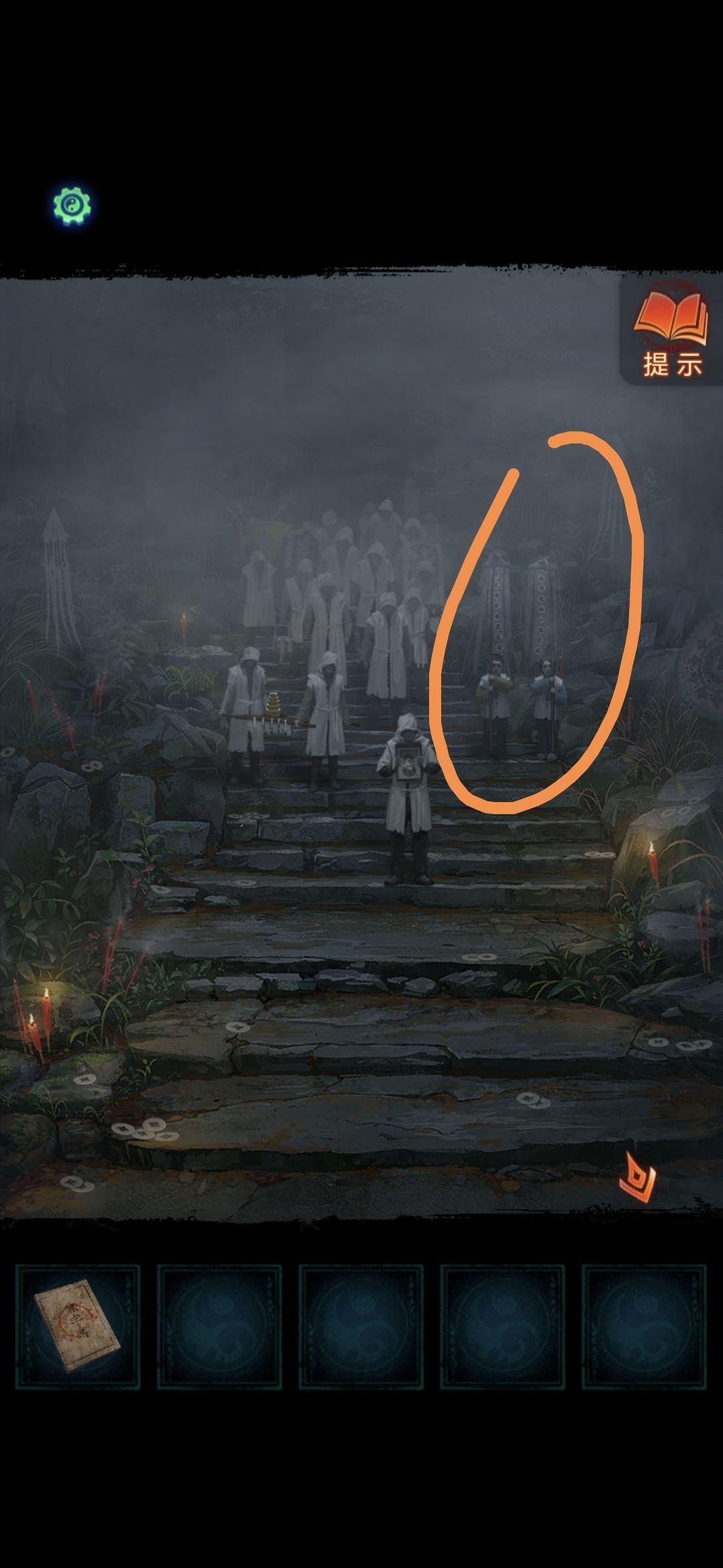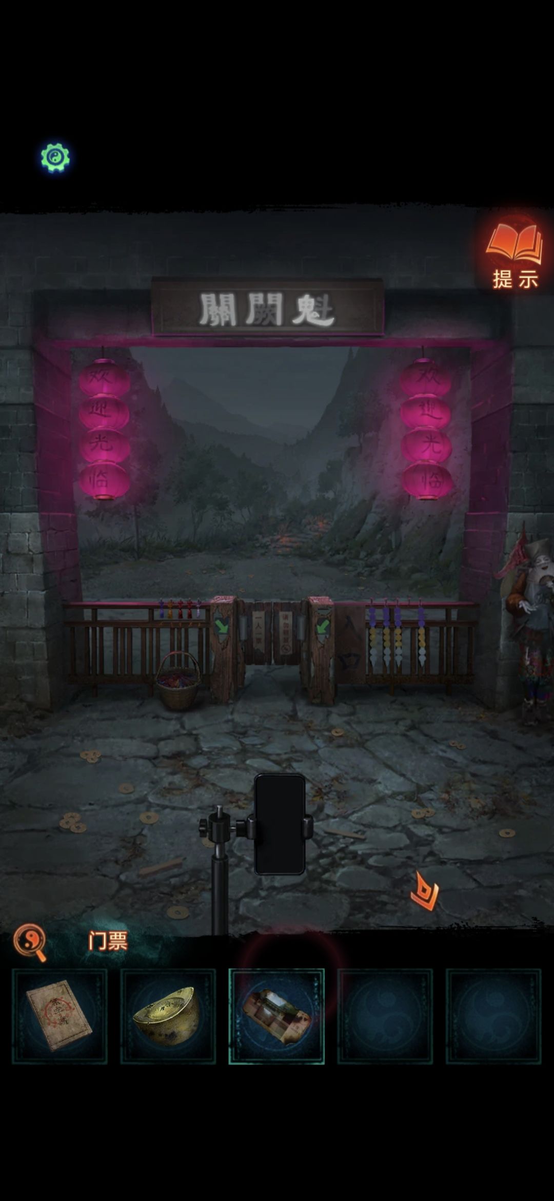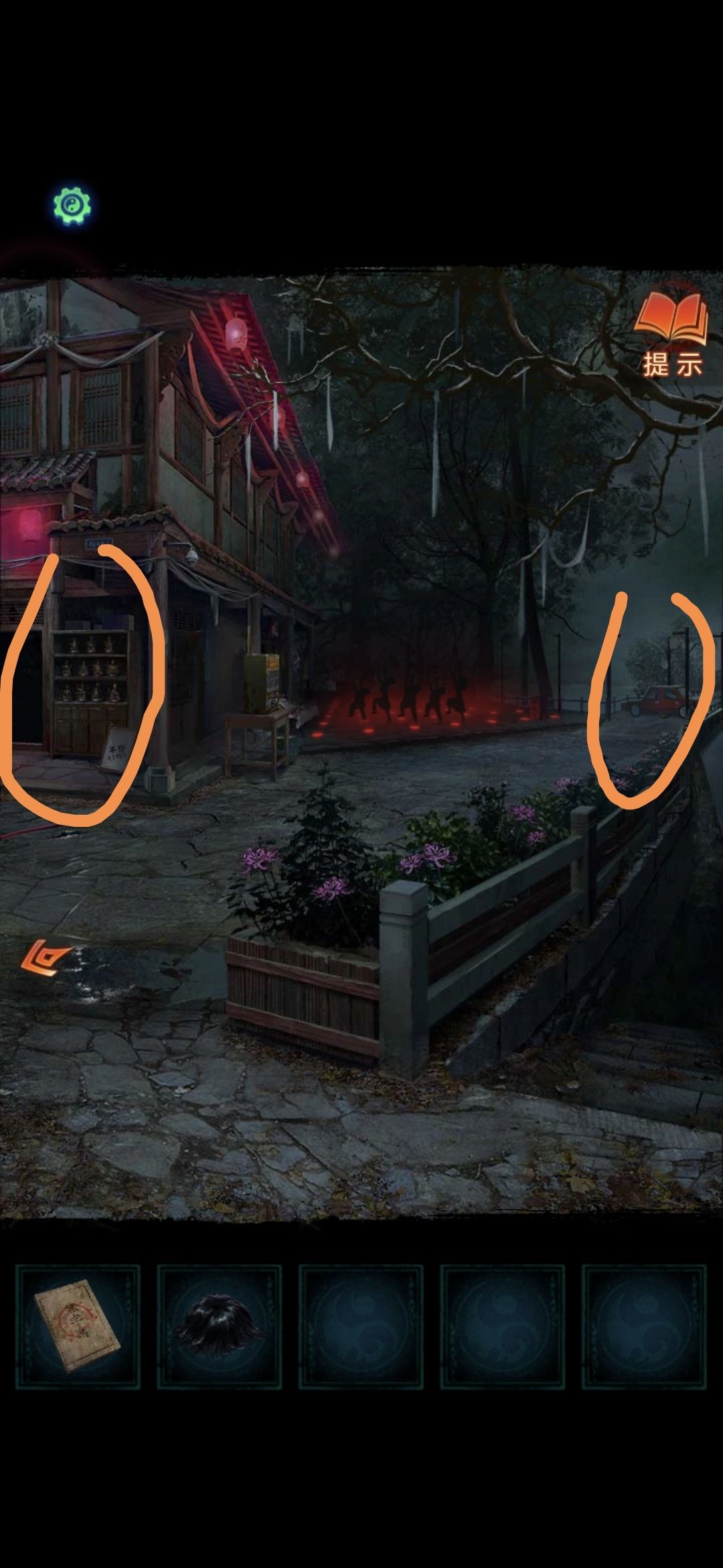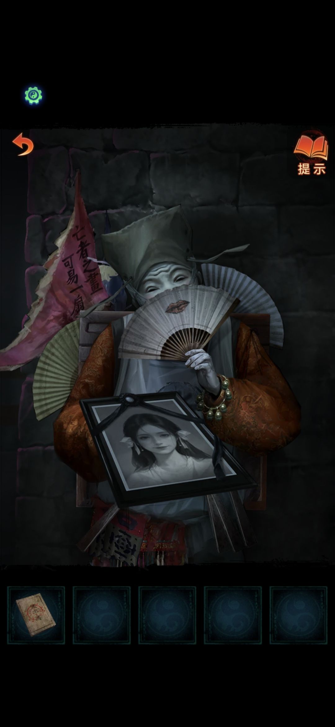 用便携风扇吹倒纸人,查看书籍,根据书上线索可知挽联上的字的顺序,调整后第一章完