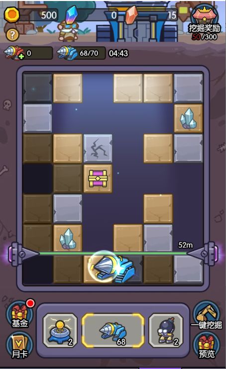 1、矿坑中蕴藏有矿石和各类宝藏,城主们可以通过使用钻探机对矿坑进行挖掘,挖的越深,遇到的奖励会更好哦。