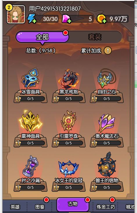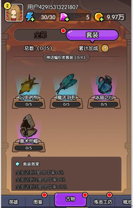 1、不同的古物可以带来不同的加成效果,当获得一个套装系列下的全部古物(满足星级条件)时,将激活该套装效果,获得更多的属性加成。