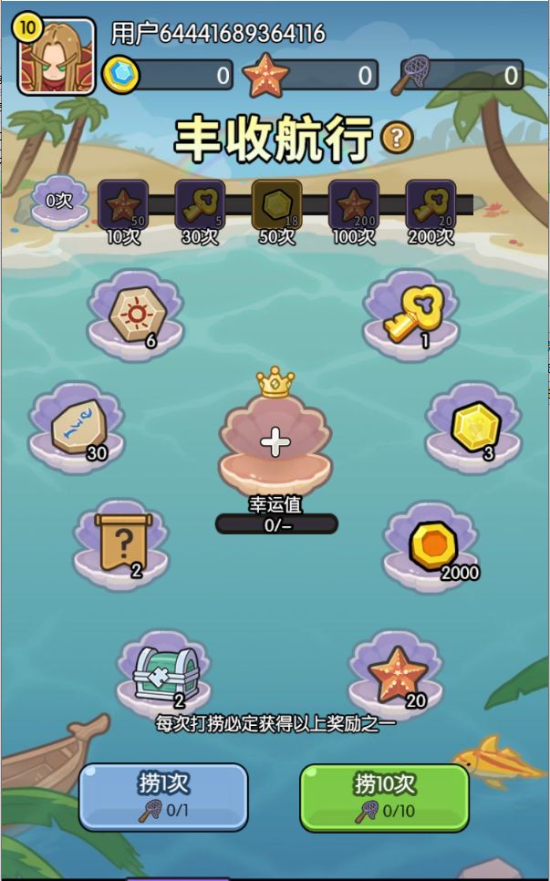 4、每消耗1个渔网,积累1点幸运值,幸运值填满后必得大奖。