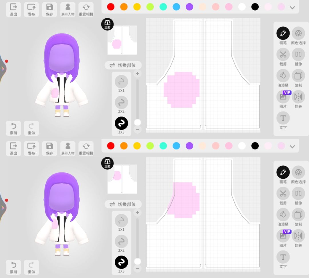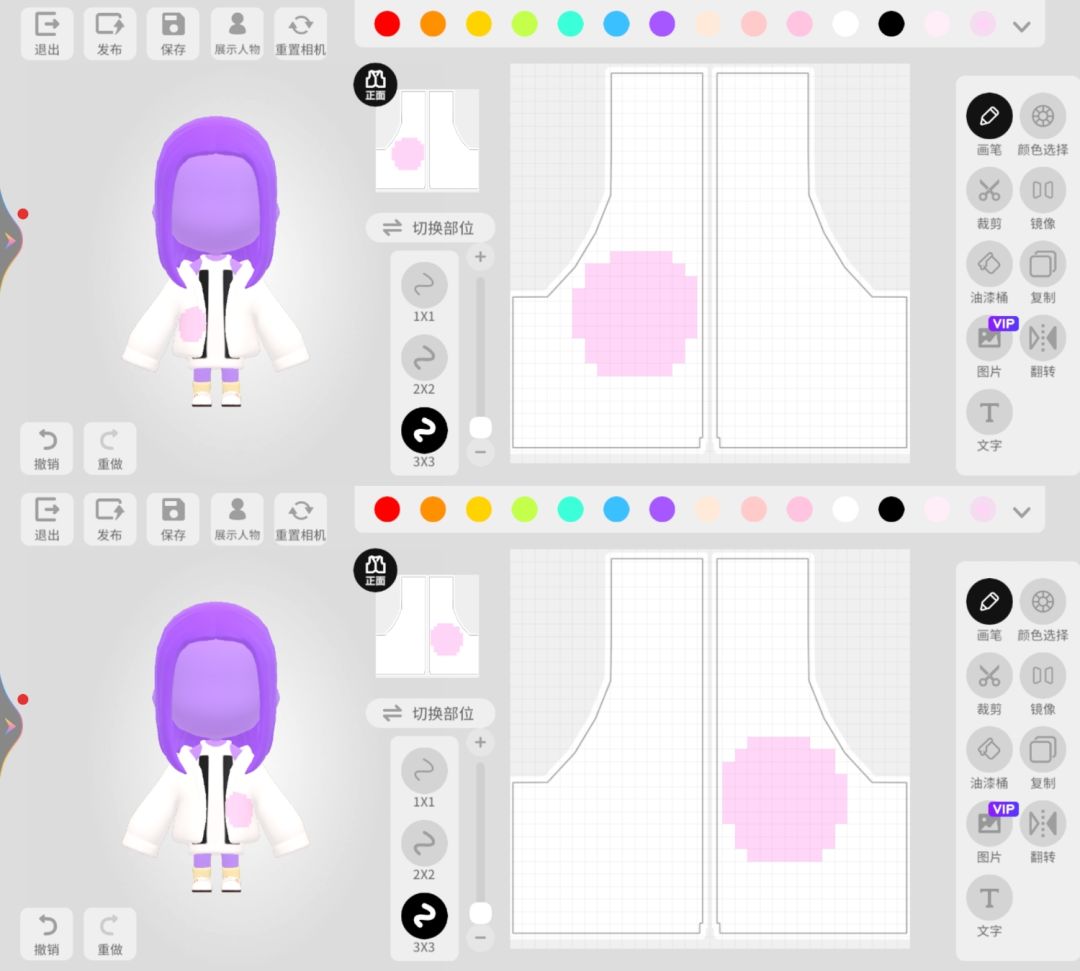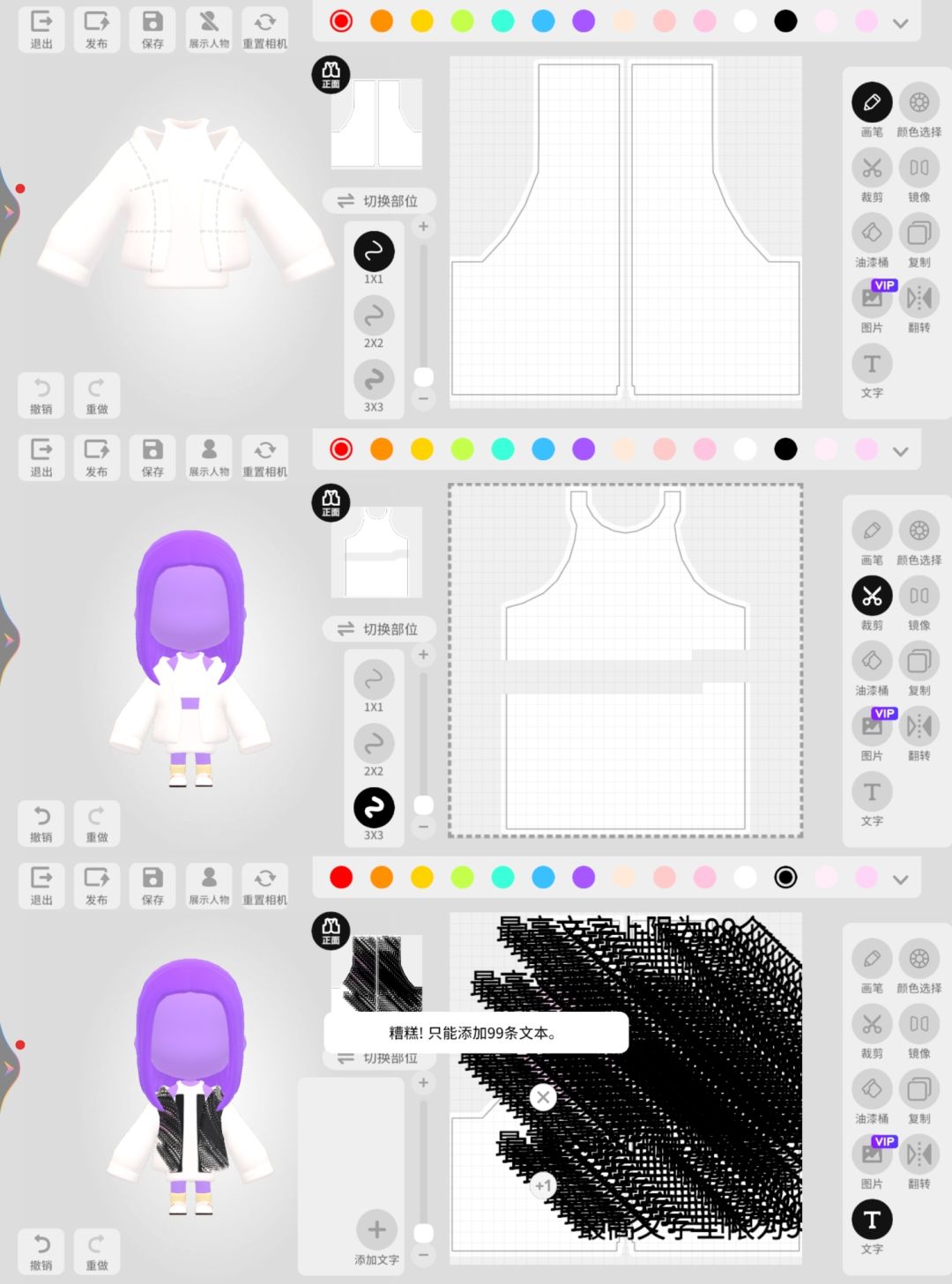 〖文字〗你可以只是添加个性文字,也可以利用各种各样的符号丰富自己衣服上的花纹,但需要注意的是文字并不能完全代替画笔,文字添加上限为99。
