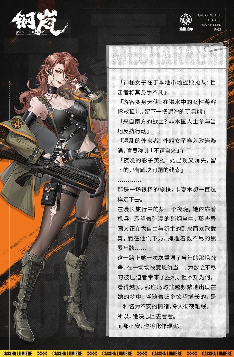 「卡夏·卢米埃尔」,不仅只是个出现在晨星同盟通缉令上的名字,早在米赫玛战争时期,卡夏这个名字便多次出现在战役名单之中。你以为掀起风暴的是什么?答案:风暴自身。