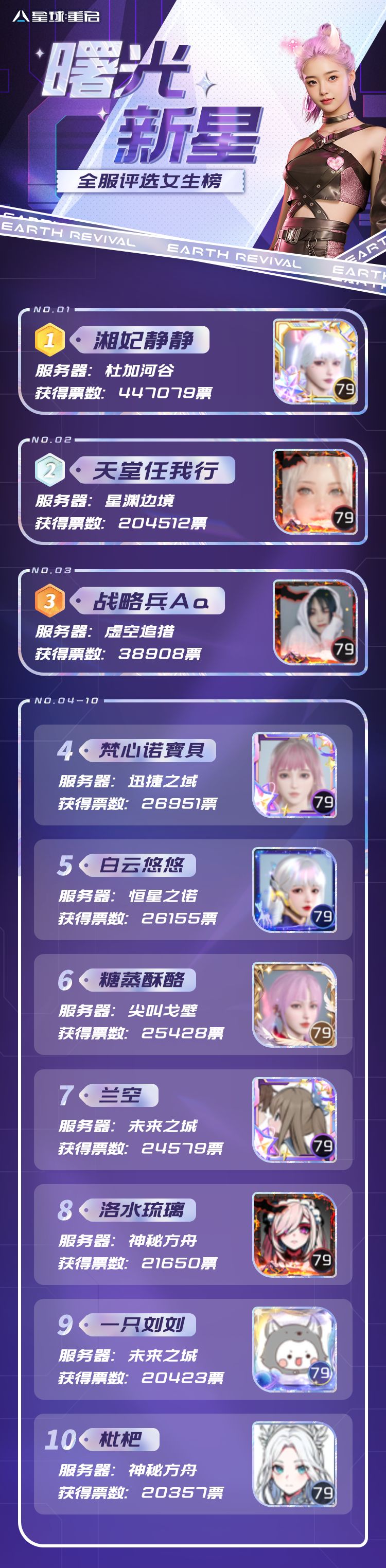 选秀大舞台,有梦你就来!曙光新星评选在幸存者们的共同参与下,终于迎来了尾声!10位曙光新星闪耀出道!恭喜这些未来之星成功踏上北大陆的舞台,成为大家瞩目的焦点。扫地阿姨可是把出道视频刷了好几遍呢,希望下次出道位也有咱的一席之地。