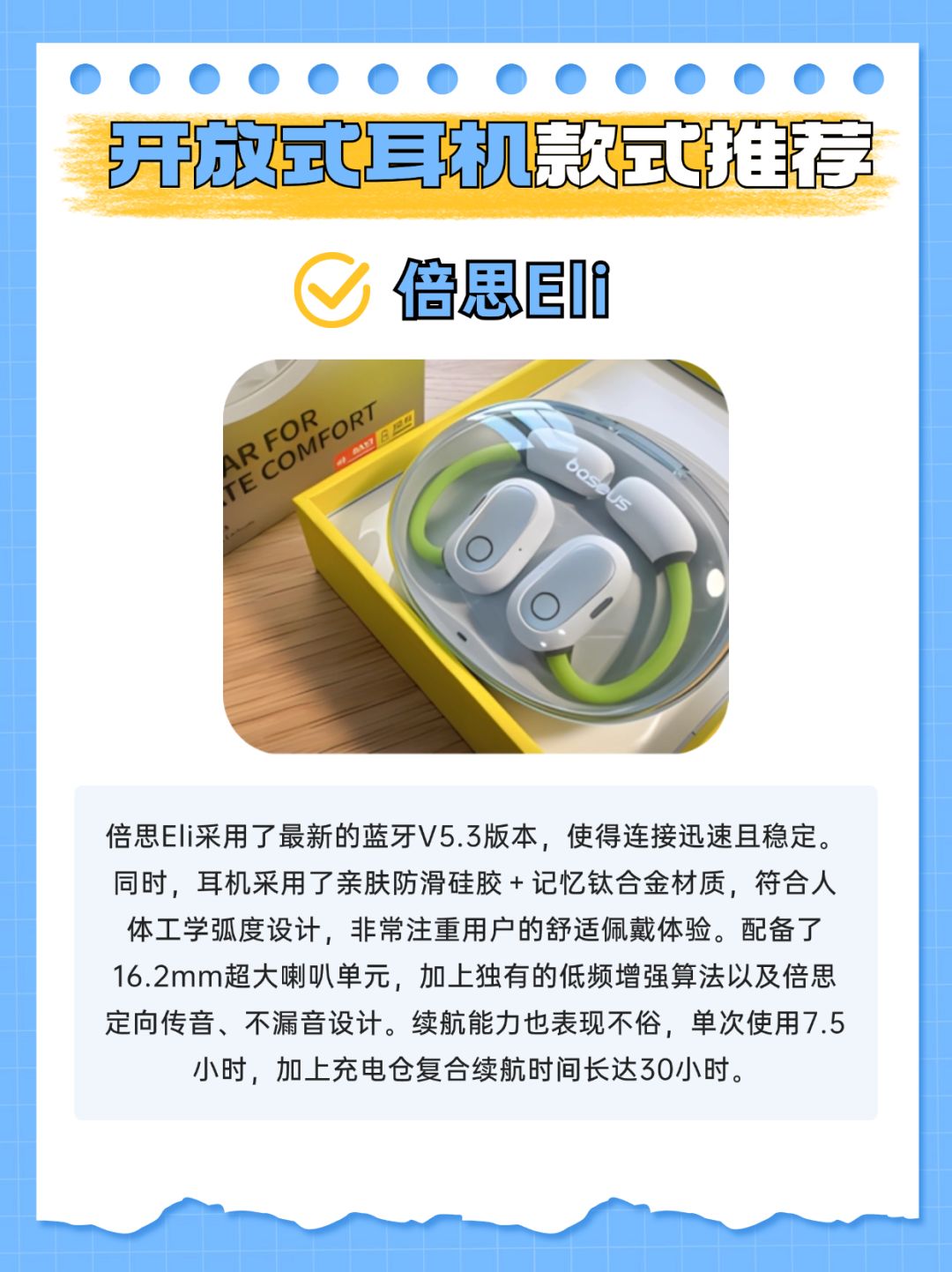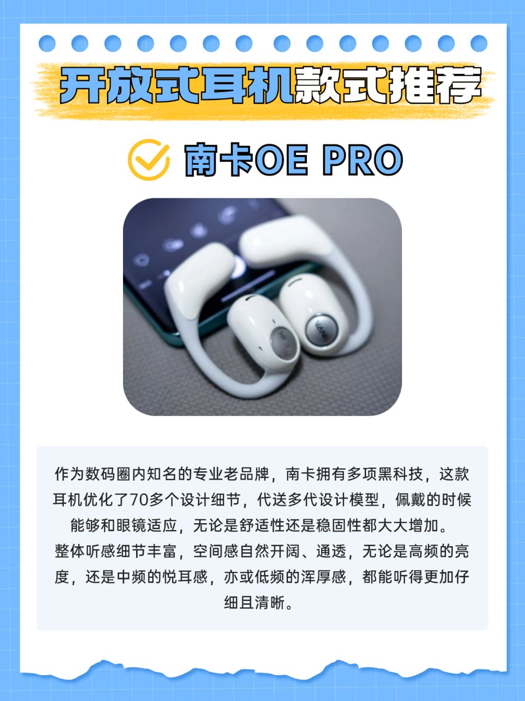 有没有和我一样对数码产品一窍不通的宝子!! 新手小白想找个开放式耳机真的好迷茫啊, 跟风乱买又很容易踩雷!! 所以借这次我自己也整理了一些开放式耳机。 认真做了会功课,总结了一些好用不踩雷的开放式耳机, 不会选的姐妹直接看这篇! -南卡OE MIX:性价比首选,舒适度与音质的集合体 -QCY Crossk GTR:自由式佩戴,适合运动 -Cleer ARC II:版本种类多,适用范围广 -南卡OE PRO:性能强劲,音质巅峰 -倍思Eli:高颜值,音质好 #开放式耳机 #蓝牙耳机 #运动耳机 #耳机 #无线耳机 #科技数码 #平价蓝牙耳机