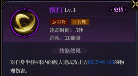 横扫:物理系的小范围伤害法术,升阶后对施加有初级debuff状态的敌人有概率增加进阶的debuff状态,同时也会增加法术伤害效果,冷却时间很短。