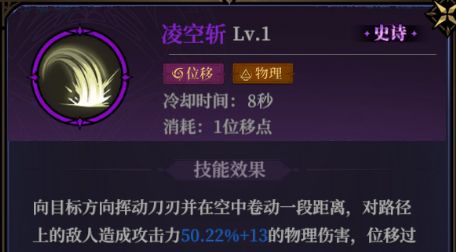 凌空斩:少有的物理系跳跃位移伤害法术,位移过程中造成伤害且有较短的无敌时间,升阶后不仅增加给敌人上debuff的能力,还能提升法术伤害。