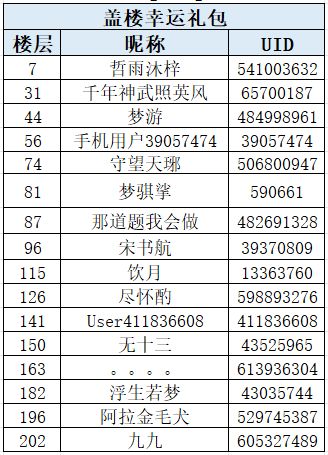 ◆随机抽取3位参与盖楼的幸运玩家获得【盖楼特别礼包】!