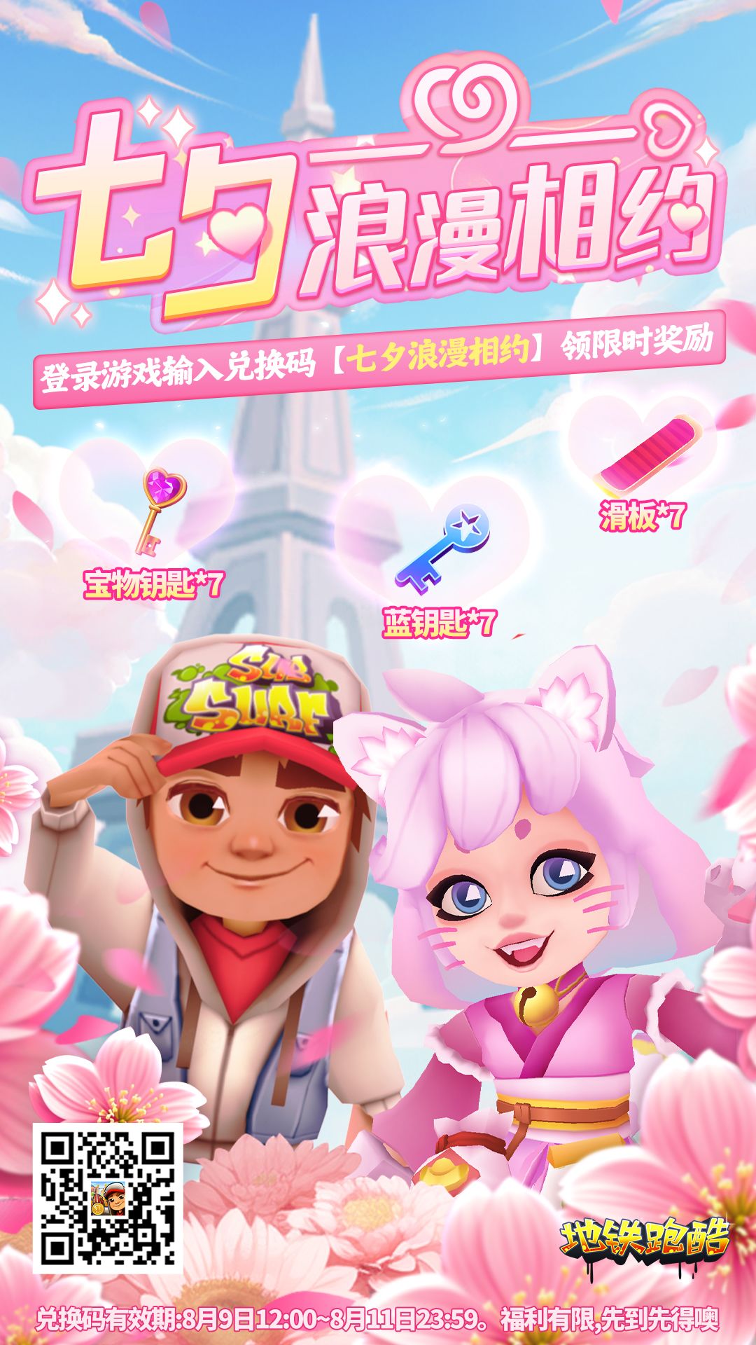 为了庆祝七夕节,跑酷君为大家准备了一份兑换礼包,数量有限,先到先得哦~