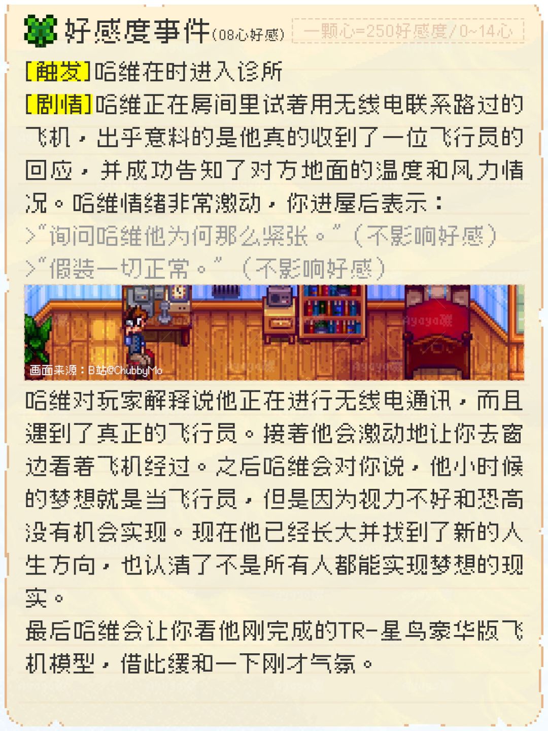 哈维是《星露谷物语》游戏中玩家可以结婚的12个角色之一,他是一名医生,曾经的梦想竟是飞行员……