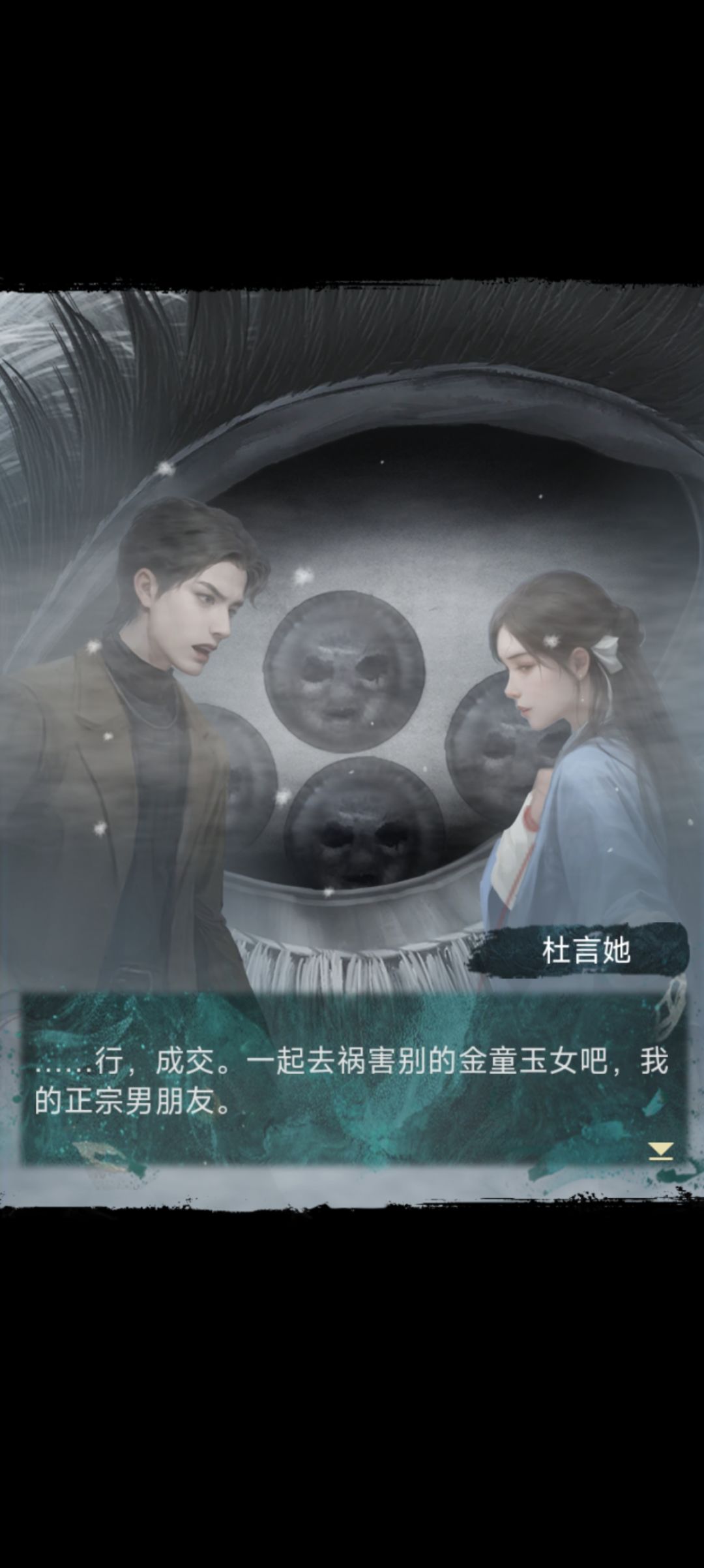 李逢泽、杜言她纸7的双恶人设定,真眼前一亮。略剧透。没有前情,本以为又是为救爱人,不惜身闯阴间。结果却是彼此算计的一对金童玉女。有感情但不多,棋逢对手。一个从不用真姓杀师,一个听力残缺不惜拉无辜人入局。同年同月同日生的两人在生日那天立下同日死的约定。两人能力相当,目标一致。发现嚯嚯对方不容易后,果断决定回去嚯嚯其他金童玉女,思想一致。最后发现两人都着了八货郎道,读骗子书着骗子道,本是为了一起回阳,结果双双被谛听吞了,做了新一任“八货郎”。活着不一定恩爱白头,死了却是一起阴间打工,不离不弃。怎么不算同日死,夙愿了,卿不负?另一种程度的he