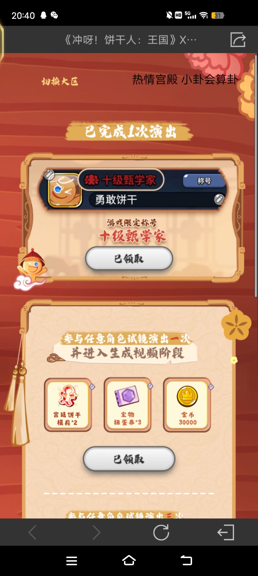 对了友情提示,最后答完题不要以为进游戏邮箱会自动发,你要再进活动手动领一下的哈哈哈