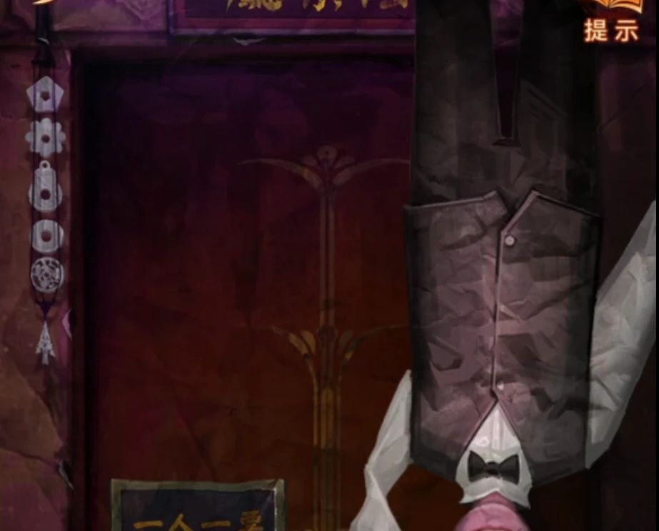剧情结束之后幕布上出现地狱图,记一下上面出现的都有什么东西,有拉着人的黑白无常,在烧人的鬼和推倒人的鬼,再次回到音乐厅查看纸人机,上面写了可以买一赠一,但是需要填写验证码,将地狱图中出现的内容都选择一下点击验证拿到纸人头发。