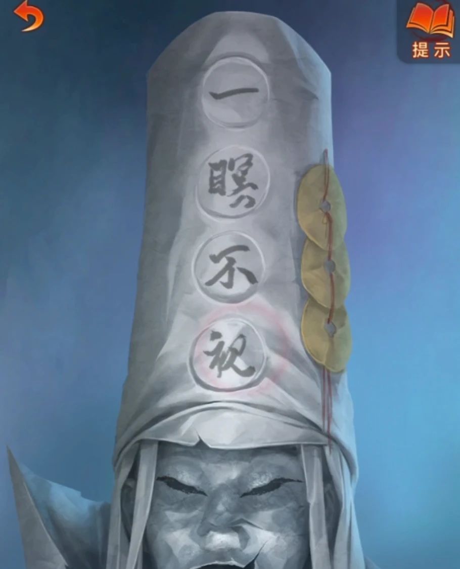 再次回到音乐厅,对舞台后面的纸人机输入密码,前面祸无福对应的就是空藏何了,右边的灯笼、扇子、云朵对应的就是唵、娑、诃,调整完毕后我们可以玩换装小游戏了,强烈要求奇迹老登加入换装系统!我们需要调整的是白无常,想一想前面对于白无常的记忆,调整到如下图后点击确认形象。