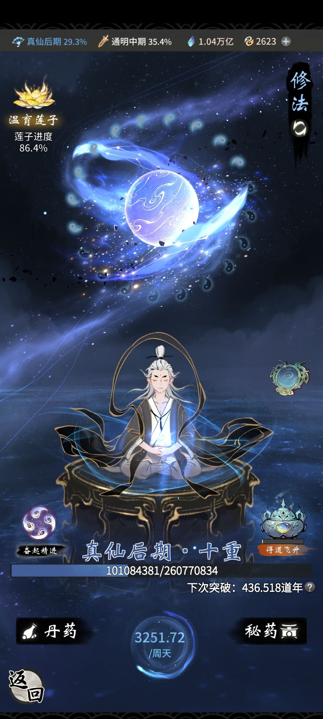 总结:零氪还是能玩,就是修为大境界基本后面会慢一个半月-2个月,现在小世界上限了,QAQ