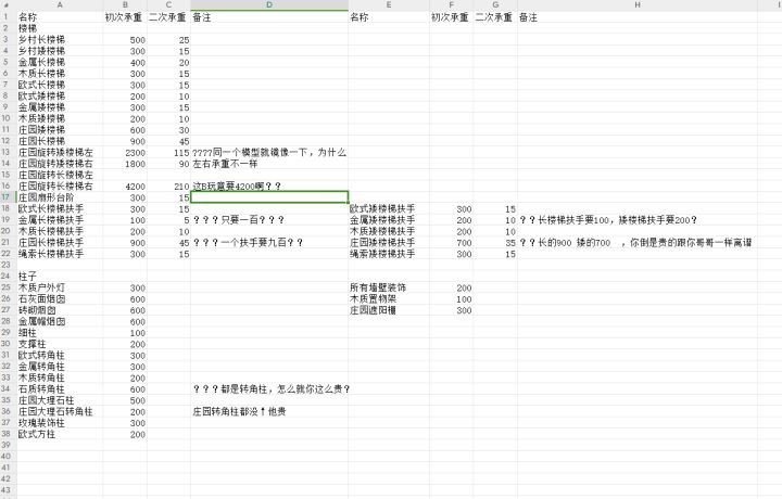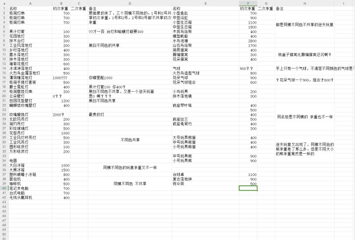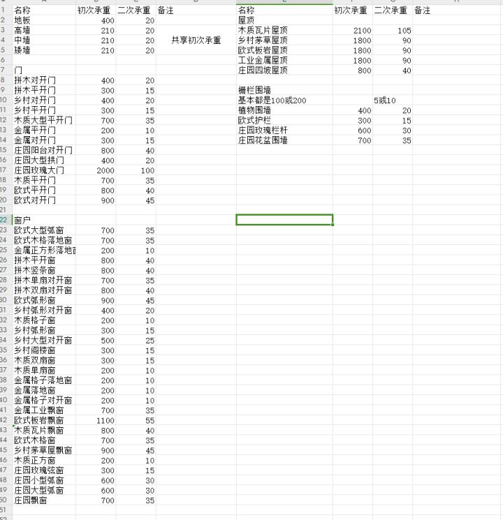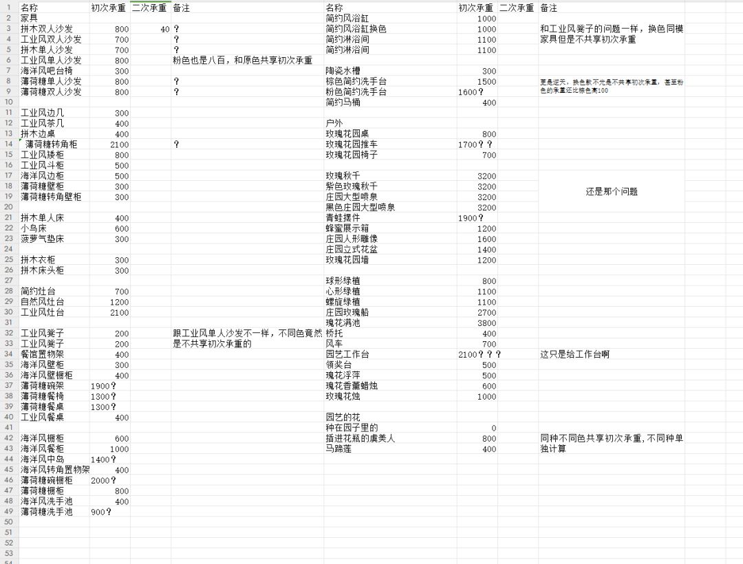 先说结论,心动小镇的承重数值设计完全没有规律性和逻辑性,我更倾向于策划喝多了瞎几百填的。