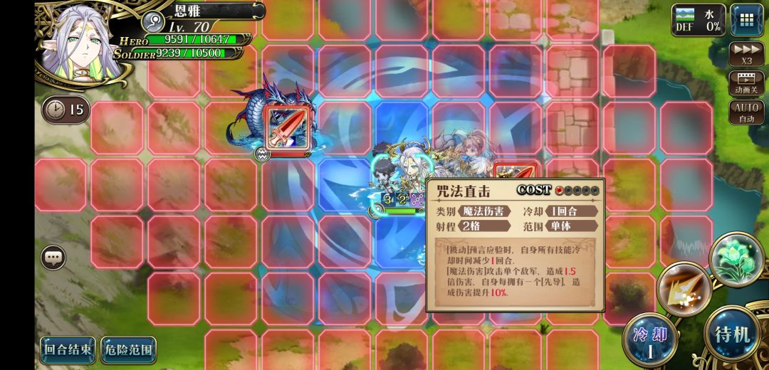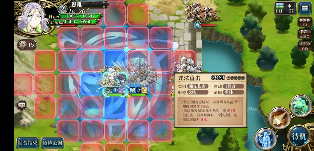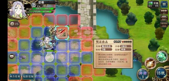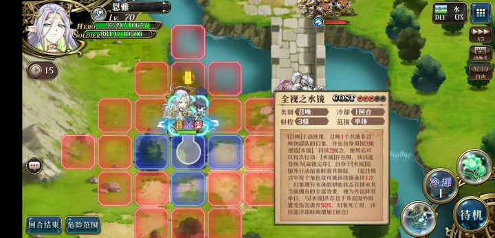 3.上走一格水镜复制艾希恩(艾希恩行动的时候如果用了疾驰直接重开),咒法直击艾希恩